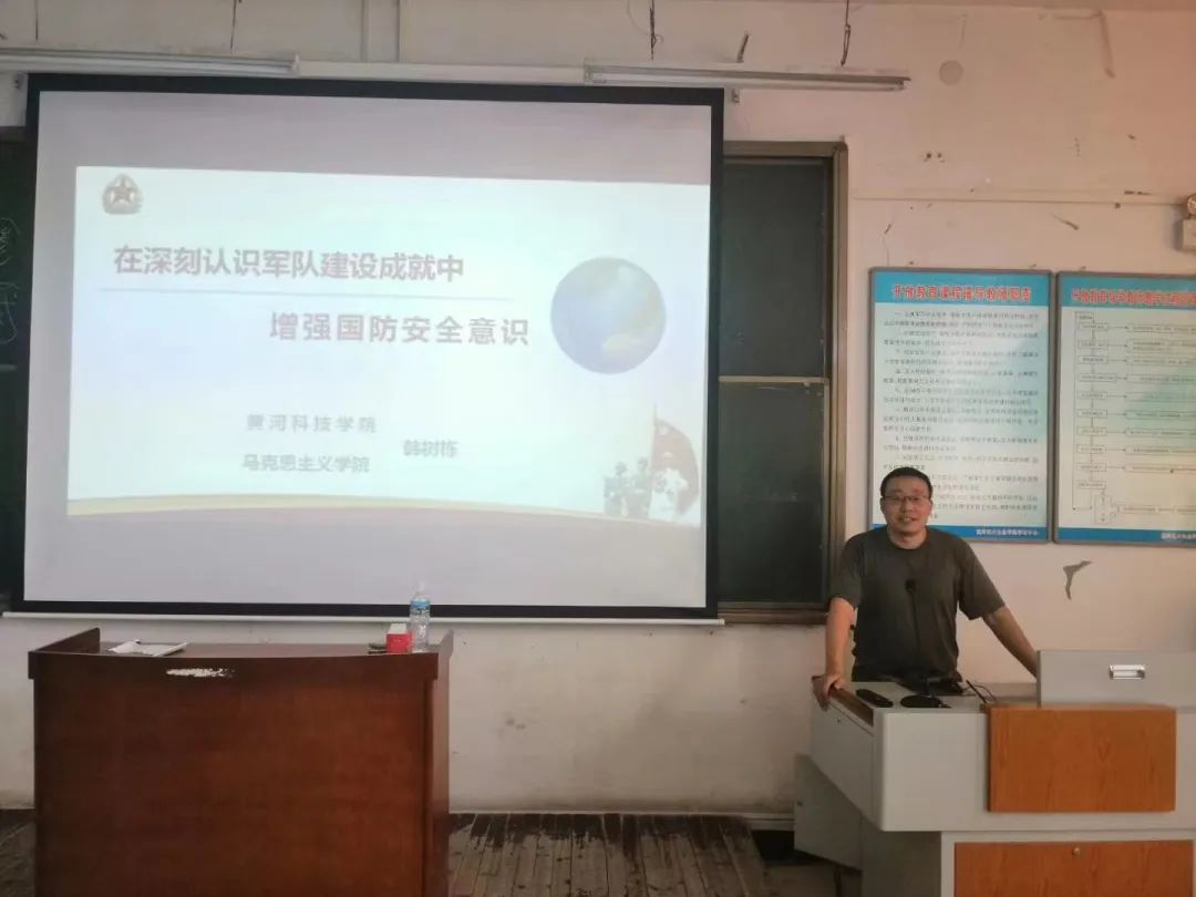 韩树栋有着20年从军经历,既有部队基层工作经历,也有旅、师机关工作经历,还有军队院校教学工作经历,他在完成学院思政课教育教学工作的同时,积极为学校每年入学新生开展国防教育宣讲,为学校每届军训教官强训营进行辅导授课,多次受邀为二七区人武部、管城区人武部、中牟县人武部预定新兵讲授国防教育课,多次为河南省新任职基层武装部长培训班进行辅导授课,多次受邀为管城区和荥阳市基干民兵轮训队辅导授课,并在2021年全省高校军事课教学展示评比中获得一等奖的好成绩。近三年来,他先后受邀到大、中、小学和党政机关开展国防教育宣讲、党的创新理论宣讲和爱国主义教育宣讲100多场次,受到一致好评。