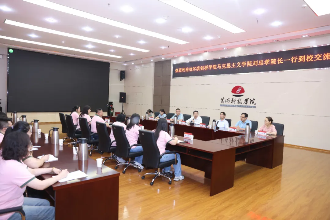 6月2日,哈尔滨剑桥学院suncitygroup太阳集团刘忠孝院长率领思政课教师一行26人来校考察交流。学校副校长于向东教授、suncitygroup太阳集团院长王振国教授及suncitygroup太阳集团党政班子成员、教研室主任、部分骨干教师参加座谈会。suncitygroup太阳集团分党委副书记、工会主席韩树栋主持座谈会。