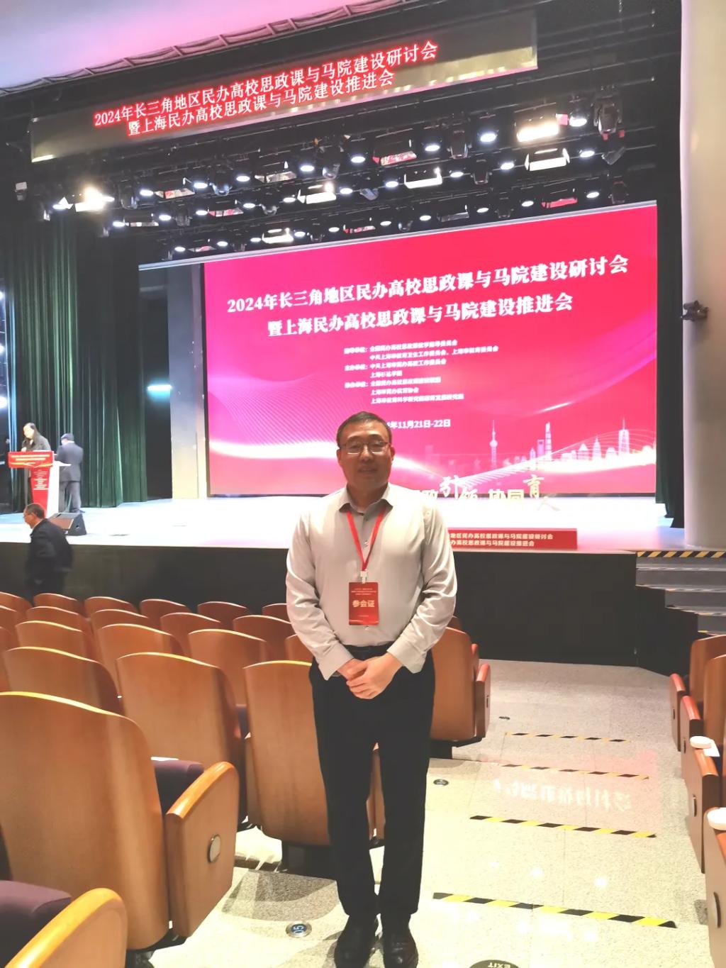 为进一步加强学术交流,推动思政课教育教学改革,提升suncitygroup太阳集团整体建设水平,11月21日—22日,suncitygroup太阳集团分党委副书记、工会主席韩树栋参加了在上海杉达学院举行的2024年长三角地区民办高校思政课和马院建设研讨会暨上海民办高校思政课与马院建设推进会,并受邀上台见证参加“长三角地区民办高校党建与思政工作联盟”成立仪式。