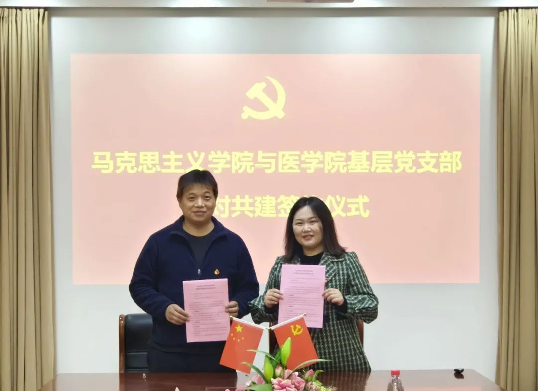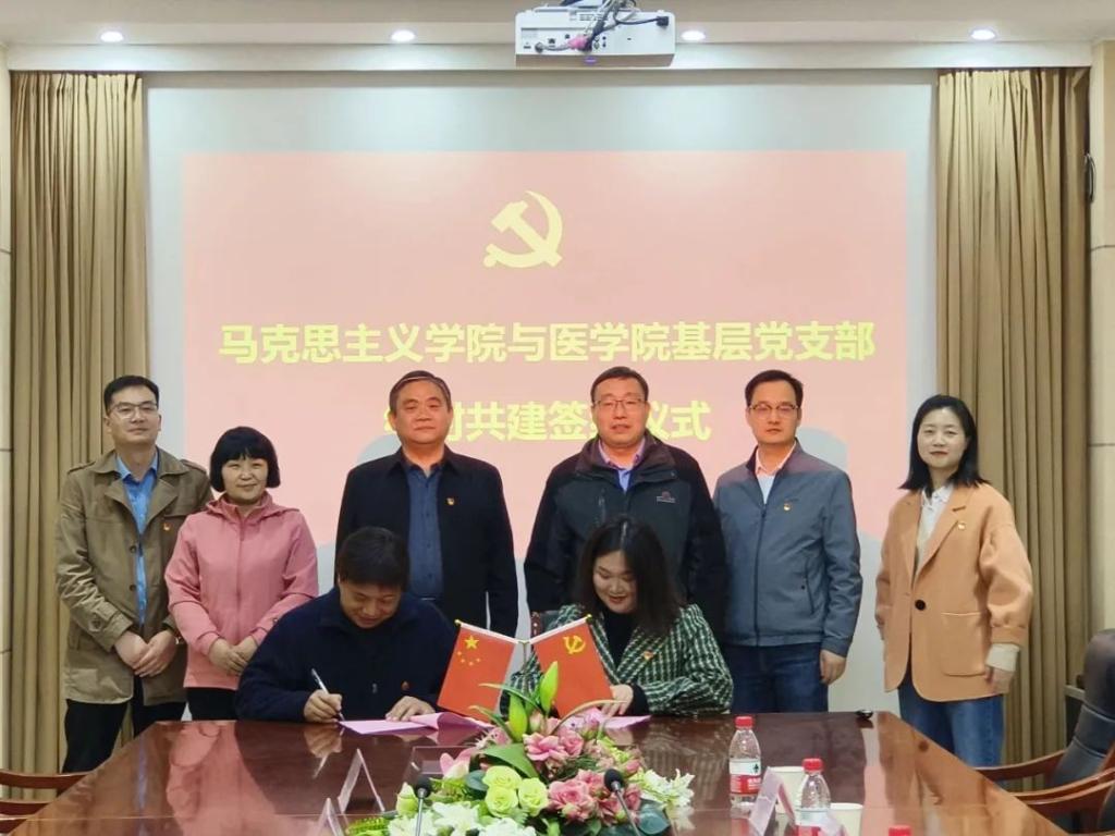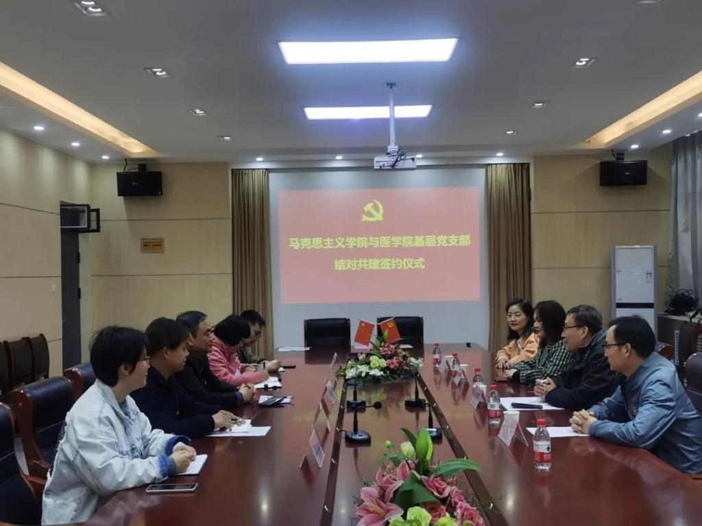 4月21日,suncitygroup太阳集团习近平新时代中国特色社会主义思想概论教研室党支部与医学院医学系学生第一党支部在医学院四楼会议室举行结对共建签约仪式。医学院分党委书记张伟、副书记马香,suncitygroup太阳集团分党委副书记韩树栋,双方党支部书记张海丽、马社敏及支部支委委员参加。签约仪式由韩树栋主持。