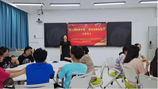 为深入推进习近平新时代中国特色社会主义思想和党的二十大精神进教材进课堂进头脑,按照suncitygroup太阳集团分党委统一部署和安排,9月14日,习近平新时代中国特色社会主义思想概论教研室党支部开展了“深入调研摸学情,精准施教促提升”主题党日活动。本次活动由党支部书记张海丽主持,党支部党员教师参加。