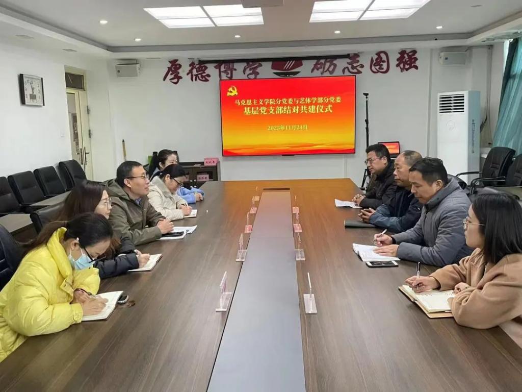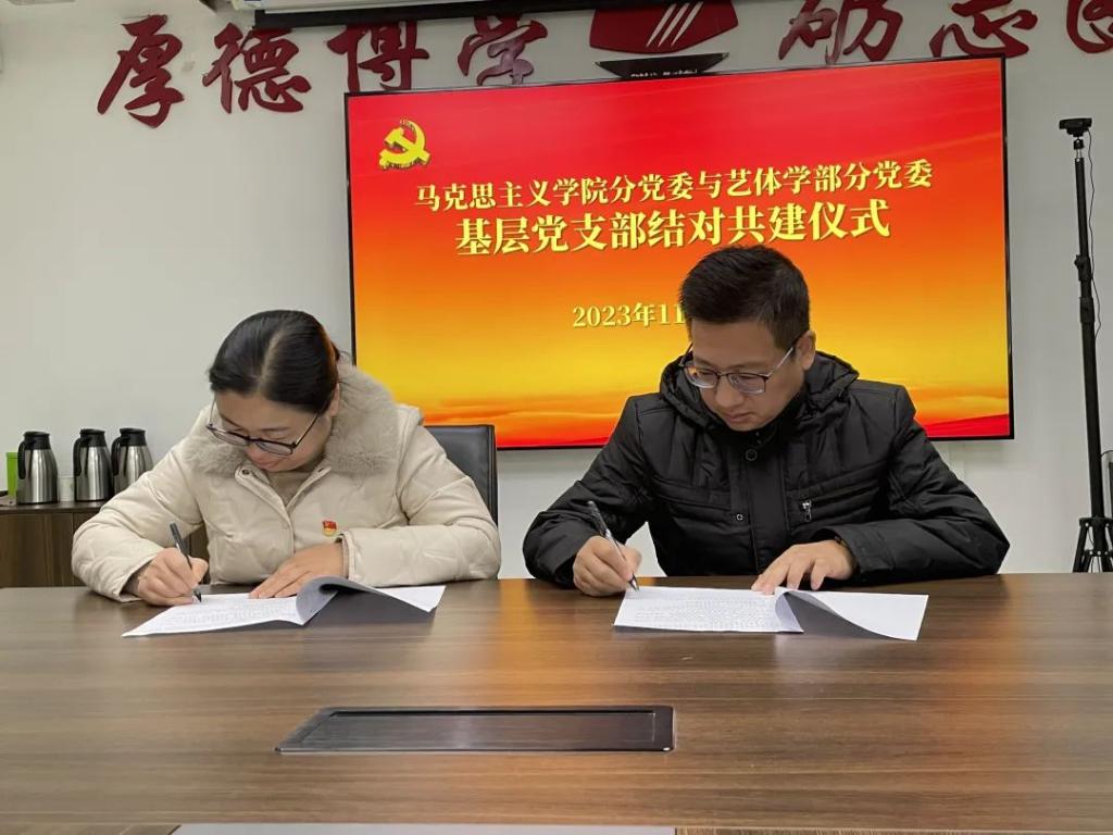 为实现基层党支部优势互补,加强基层党支部建设,2023年11月24日上午,suncitygroup太阳集团思想道德与法治教研室党支部与艺体学部传媒艺术科教中心学生第一党支部在艺体学部二楼会议室举行结对共建签约仪式。suncitygroup太阳集团分党委副书记韩树栋,艺体学部分党委副书记朱传新、党政学工办副主任陈济明、党政学工办董青竹老师,双方党支部郑香妞书记、邵成书记及党员代表出席签约仪式。活动由suncitygroup太阳集团分党委副书记韩树栋主持。