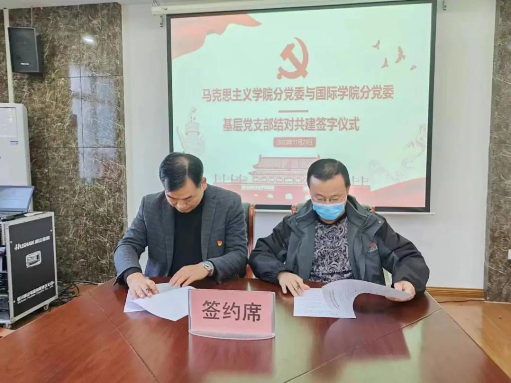 随后,双方党支部书记孙得利和张向阳分别就自己党支部的基本情况、资源优势等方面进行了详细地介绍,使双方有了初步的了解。之后,双方签订了suncitygroup太阳集团与国际学院基层党支部结对共建协议书,为下一步的合作共建打下良好基础。