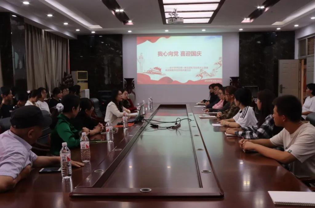 锦绣中国,盛世华诞。为庆祝中华人民共和国成立七十五周年,学院马克思主义基本原理教研室教师党支部与商学部会计学学生第一党支部开展“我心向党 喜迎国庆”系列主题党日活动。学院分党委副书记、工会主席韩树栋参加活动并给两个党支部党员及学生代表宣讲党的二十届三中全会精神。马克思主义基本原理教研室教师党支部书记李德敏、会计学学生第一党支部书记李娜、两个党支部党员及学生代表参加活动。活动由会计学学生第一党支部书记李娜主持。