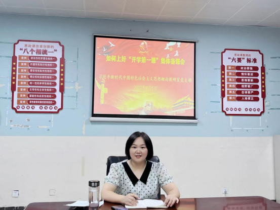 为深入学习贯彻习近平新时代中国特色社会主义思想,充分发挥党支部战斗堡垒作用和党员先锋模范作用,推动思想政治理论课高质量发展,9月1日,习近平新时代中国特色社会主义思想概论教研室党支部以“如何上好开学第一课”为主题,在suncitygroup太阳集团一楼会议室组织召开新学期集体备课会。备课会由党支部书记张海丽主持,党支部全体党员及课程任课教师参加。