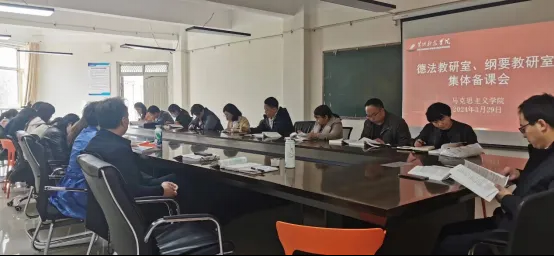 为深入贯彻落实习近平总书记关于思政课一系列重要论述,满足学校思政课教学改革需要,进一步提升思政课教育教学水平,近日,思想道德与法治教研室和中国近现代史纲要教研室在学院411会议室联合开展集体备课活动。此次备课活动分为两个阶段,第一阶段由思想道德与法治教研室郑香妞主任主持,第二阶段由中国近现代史纲要教研室卢凤华主任主持。学院副院长张攀、两个教研室任课老师20余人参加备课会。