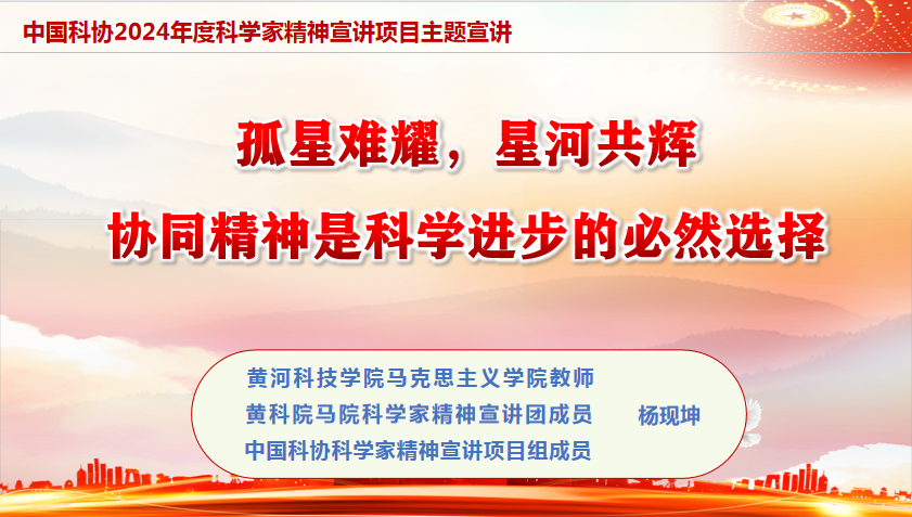 黄河科技学院suncitygroup太阳集团科学家精神宣讲团按照“科学家精神进校园”宣讲计划安排,6月11日,宣讲团将走进郑州市二七区淮河东路小学开展科学家精神宣讲。此次宣讲,suncitygroup太阳集团科学家精神精神宣讲团成员许卓异老师将围绕科学家精神中的“爱国精神”这一主题展开宣讲;suncitygroup太阳集团科学家精神宣讲团成员杨现坤老师将围绕科学家精神中的“协同精神”这一主题展开宣讲。